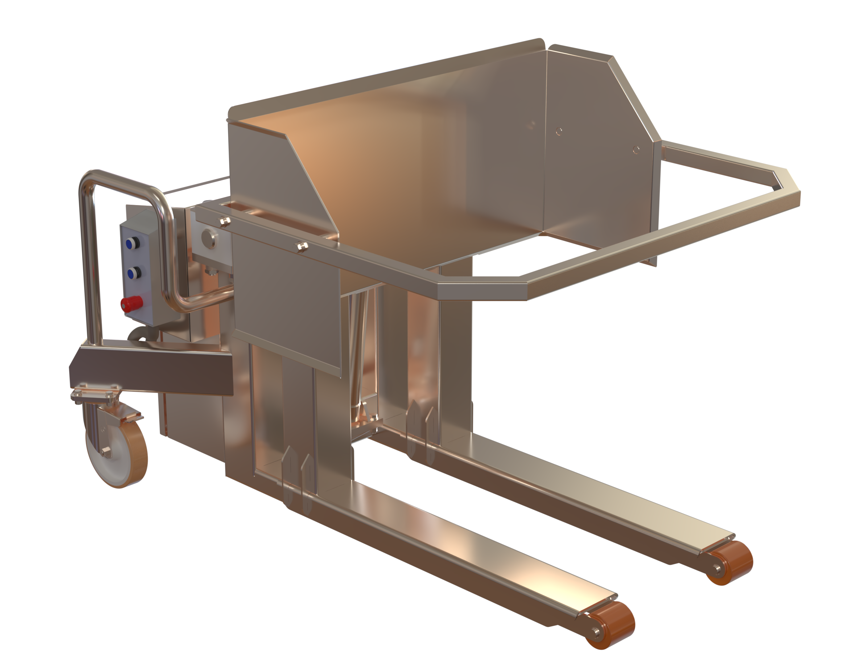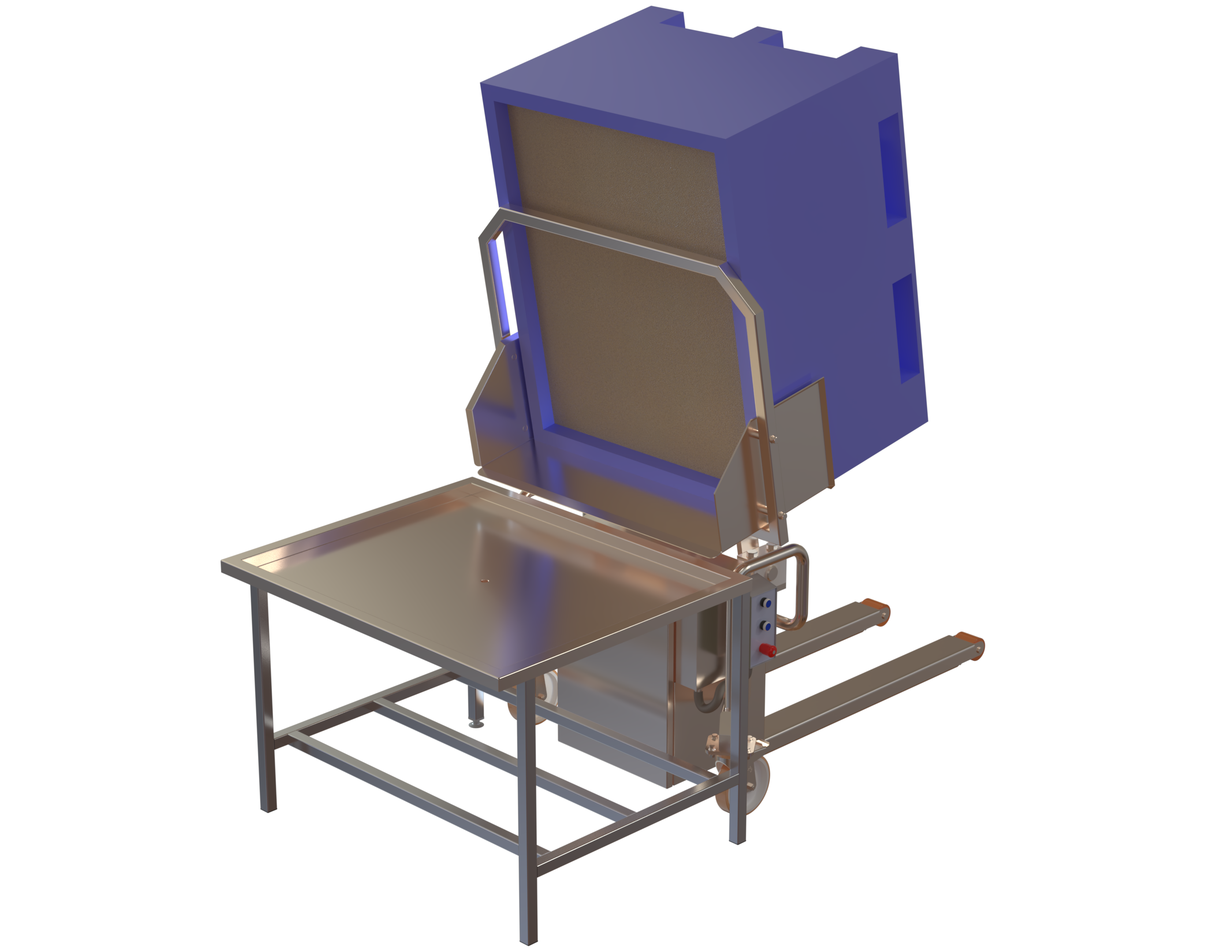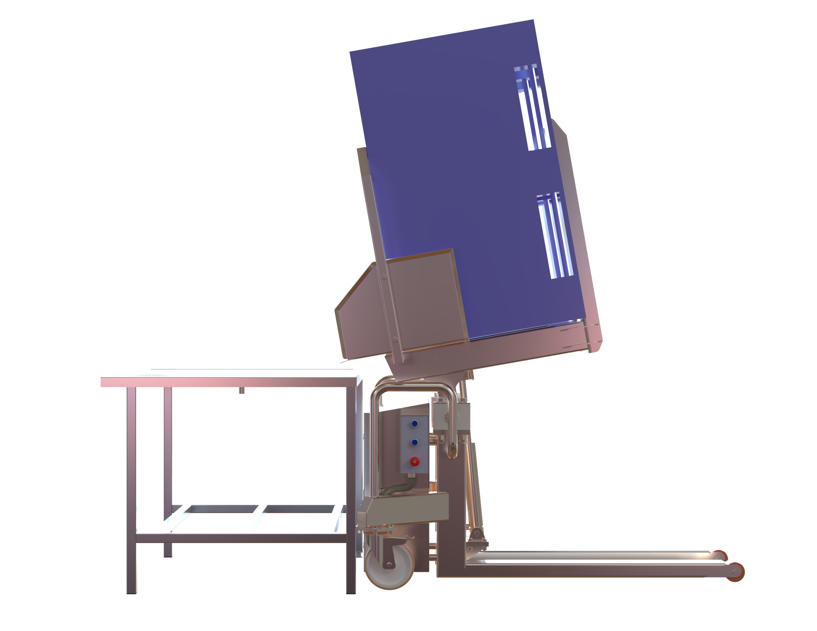 The Unitech Engineering Dolav Container Tilter (Tilta) is designed to ergonomically lift and tilt Dolav containers, plastic pallet boxes and other industrial bulk containers to a safe working height and angle, reducing operator bending and manual unloading effort. This equipment is ideal for hygiene-critical food, pharmaceutical and processing environments where safe, efficient container emptying is required.